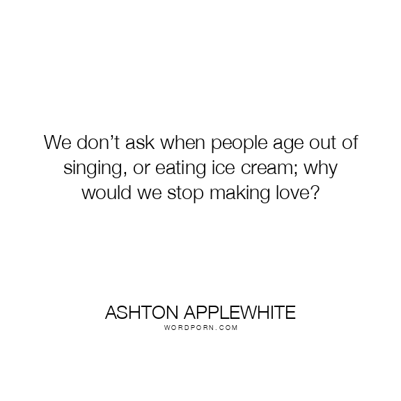 We don’t ask when people age out of singing, or eating ice cream; why would we stop making love?