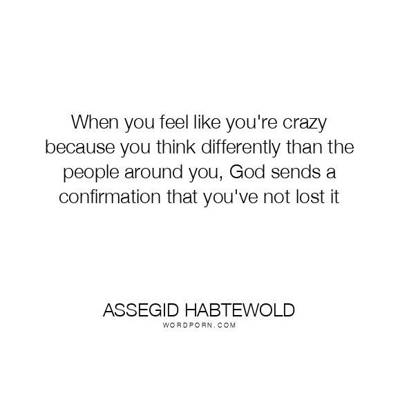 When you feel like you're crazy because you think differently than the people around you, God sends a confirmation that you've not lost it