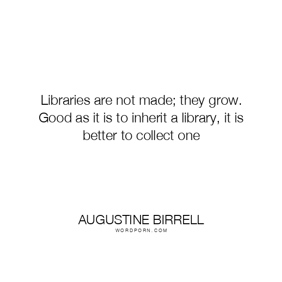 Libraries are not made; they grow. Good as it is to inherit a library, it is better to collect one