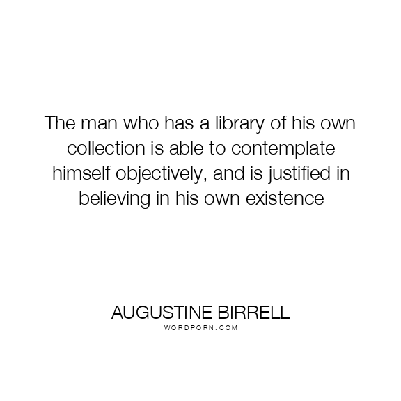 The man who has a library of his own collection is able to contemplate himself objectively, and is justified in believing in his own existence