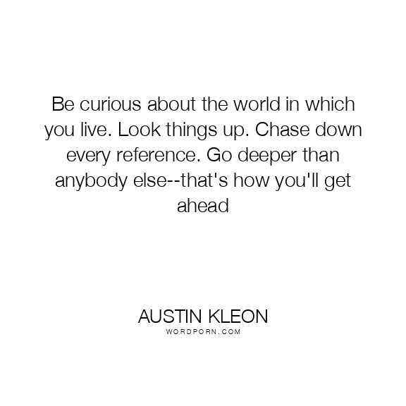 Be curious about the world in which you live. Look things up. Chase down every reference. Go deeper than anybody else--that's how you'll get ahead