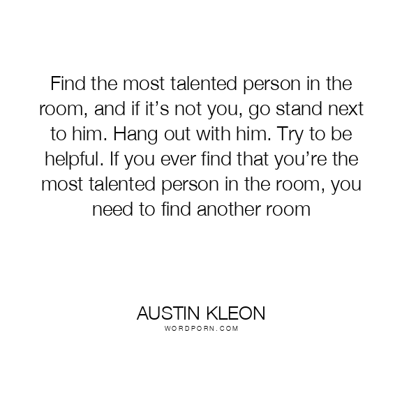 Find the most talented person in the room, and if it’s not you, go stand next to him. Hang out with him. Try to be helpful. If you ever find that you’re the most talented person in the room, you need to find another room