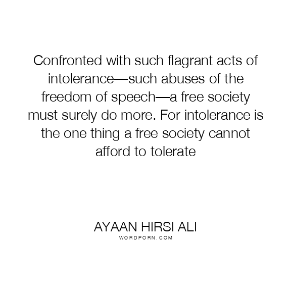 Confronted with such flagrant acts of intolerance—such abuses of the freedom of speech—a free society must surely do more. For intolerance is the one thing a free society cannot afford to tolerate