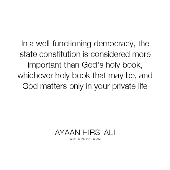 In a well-functioning democracy, the state constitution is considered more important than God's holy book, whichever holy book that may be, and God matters only in your private life