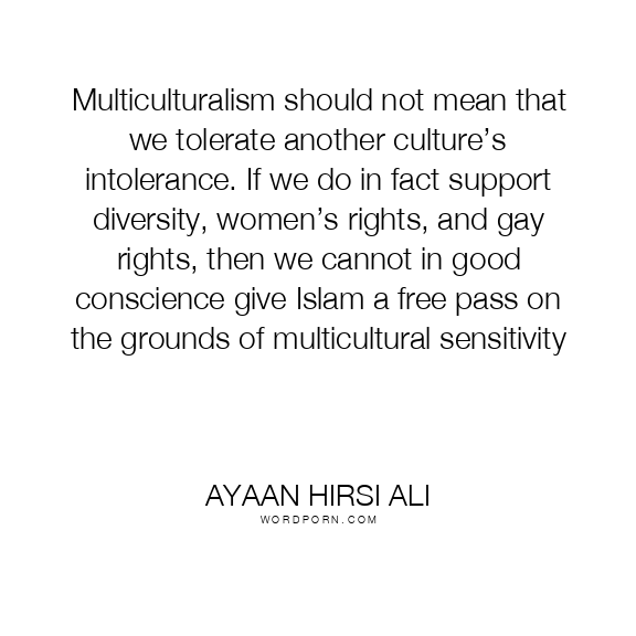 Multiculturalism should not mean that we tolerate another culture’s intolerance. If we do in fact support diversity, women’s rights, and gay rights, then we cannot in good conscience give Islam a free pass on the grounds of multicultural sensitivity