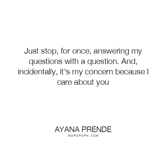 Just stop, for once, answering my questions with a question. And, incidentally, it's my concern because I care about you