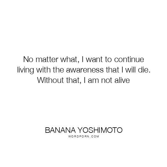 No matter what, I want to continue living with the awareness that I will die. Without that, I am not alive