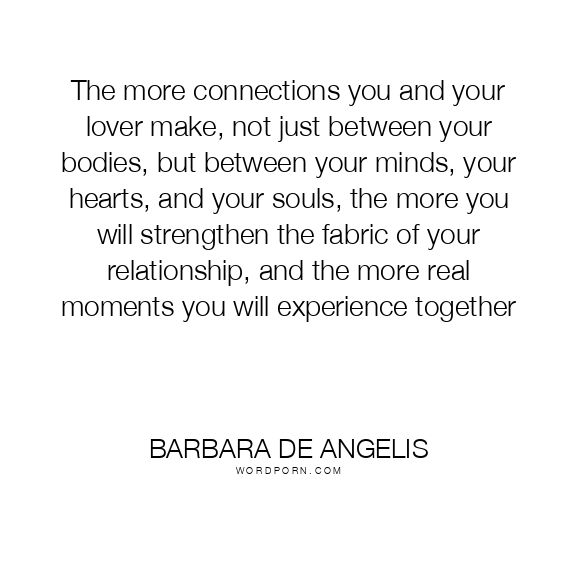 The more connections you and your lover make, not just between your bodies, but between your minds, your hearts, and your souls, the more you will strengthen the fabric of your relationship, and the more real moments you will experience together