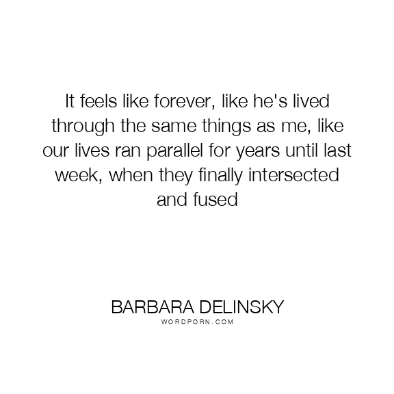 It feels like forever, like he's lived through the same things as me, like our lives ran parallel for years until last week, when they finally intersected and fused
