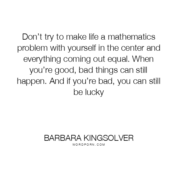 Don’t try to make life a mathematics problem with yourself in the center and everything coming out equal. When you’re good, bad things can still happen. And if you’re bad, you can still be lucky