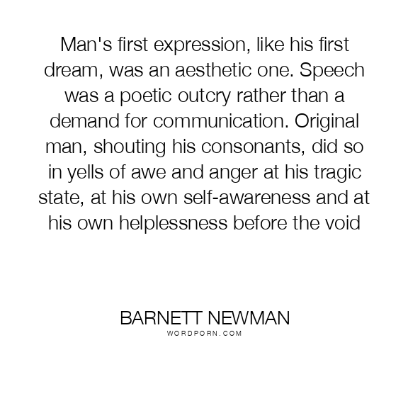Man's first expression, like his first dream, was an aesthetic one. Speech was a poetic outcry rather than a demand for communication. Original man, shouting his consonants, did so in yells of awe and anger at his tragic state, at his own self-awareness and at his own helplessness before the void