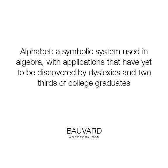 Alphabet: a symbolic system used in algebra, with applications that have yet to be discovered by dyslexics and two thirds of college graduates