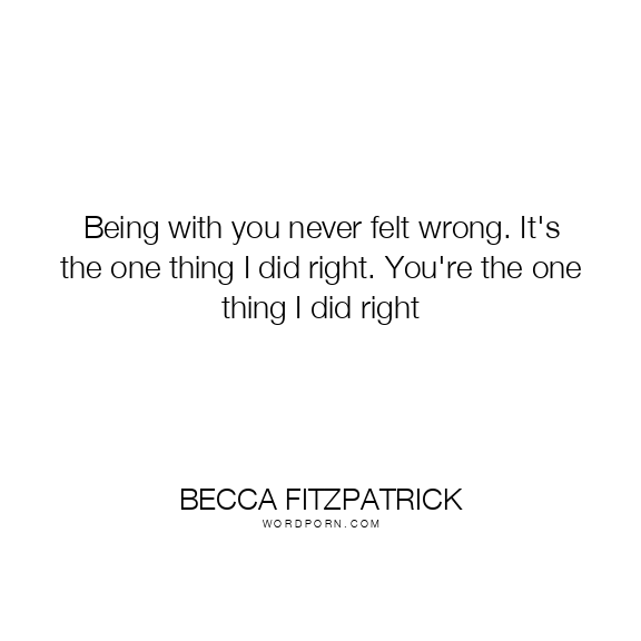 Being with you never felt wrong. It's the one thing I did right. You're the one thing I did right