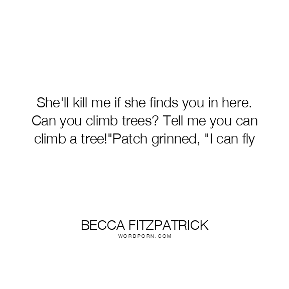 She'll kill me if she finds you in here. Can you climb trees? Tell me you can climb a tree!"Patch grinned, "I can fly