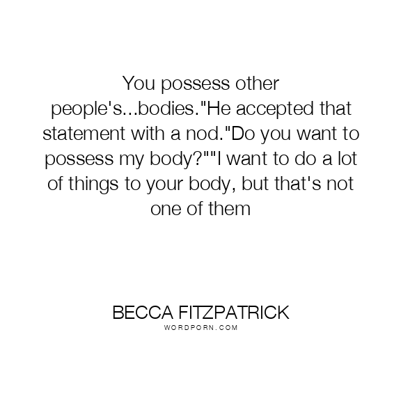 You possess other people's...bodies."He accepted that statement with a nod."Do you want to possess my body?""I want to do a lot of things to your body, but that's not one of them