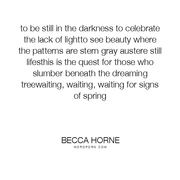 to be still in the darkness to celebrate the lack of lightto see beauty where the patterns are stern gray austere still lifesthis is the quest for those who slumber beneath the dreaming treewaiting, waiting, waiting for signs of spring
