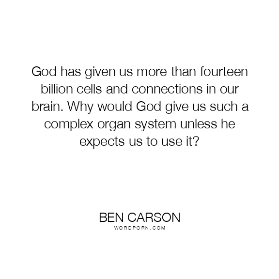 God has given us more than fourteen billion cells and connections in our brain. Why would God give us such a complex organ system unless he expects us to use it?