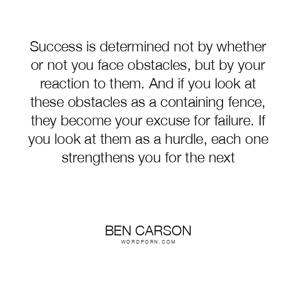 Success is determined not by whether or not you face obstacles, but by your reaction to them. And if you look at these obstacles as a containing fence, they become your excuse for failure. If you look at them as a hurdle, each one strengthens you for the next