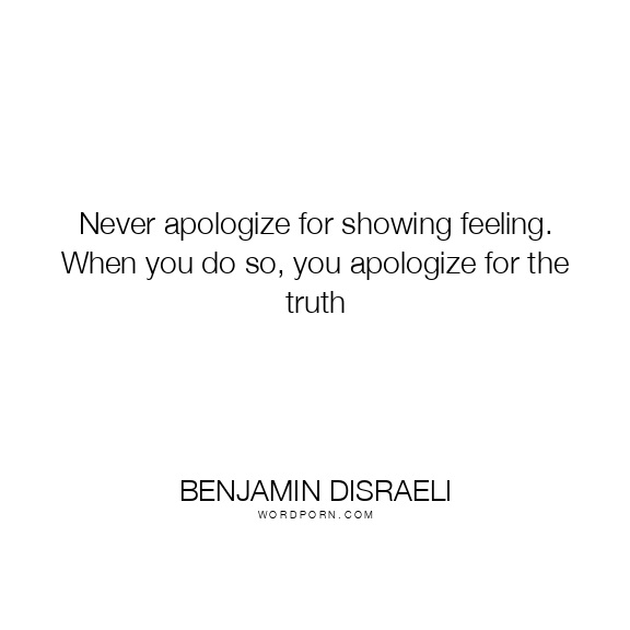 Never apologize for showing feeling. When you do so, you apologize for the truth