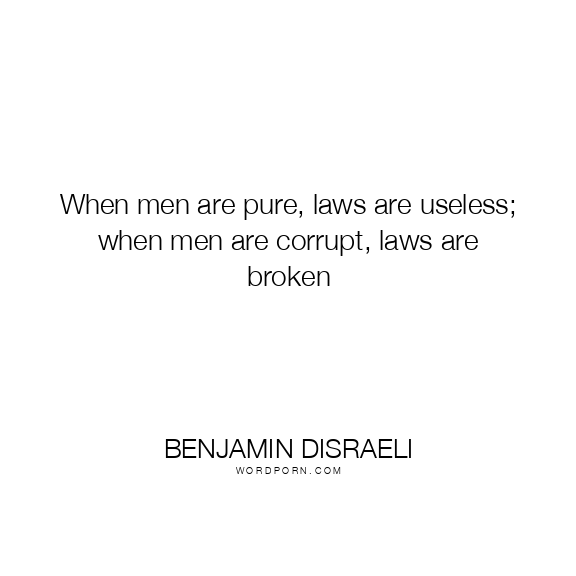 When men are pure, laws are useless; when men are corrupt, laws are broken