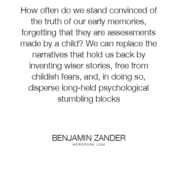 How often do we stand convinced of the truth of our early memories, forgetting that they are assessments made by a child? We can replace the narratives that hold us back by inventing wiser stories, free from childish fears, and, in doing so, disperse long-held psychological stumbling blocks