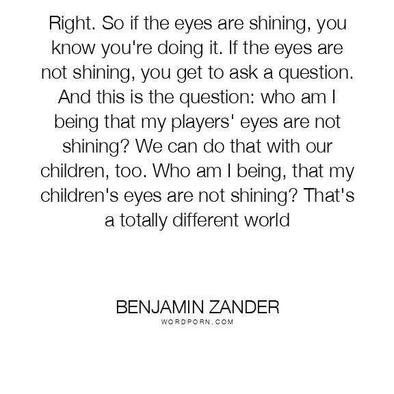 Right. So if the eyes are shining, you know you're doing it. If the eyes are not shining, you get to ask a question. And this is the question: who am I being that my players' eyes are not shining? We can do that with our children, too. Who am I being, that my children's eyes are not shining? That's a totally different world