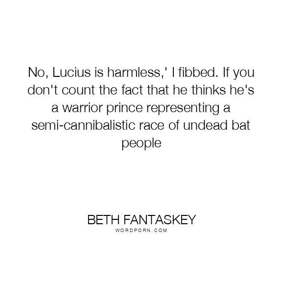 No, Lucius is harmless,' I fibbed. If you don't count the fact that he thinks he's a warrior prince representing a semi-cannibalistic race of undead bat people