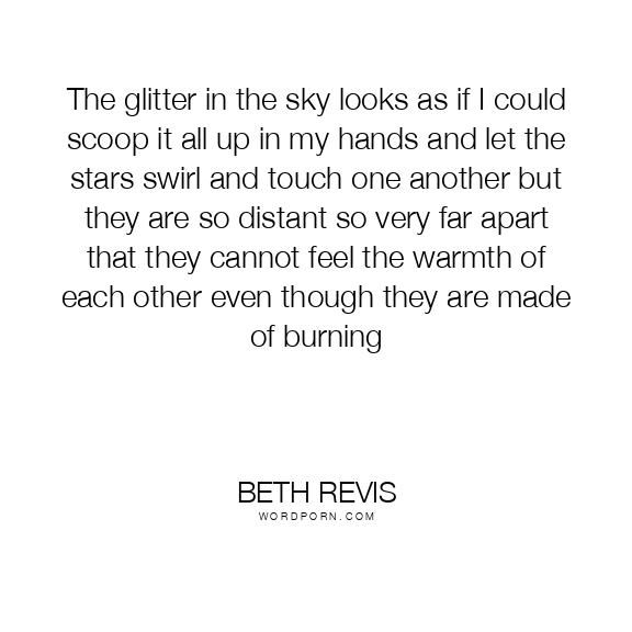 The glitter in the sky looks as if I could scoop it all up in my hands and let the stars swirl and touch one another but they are so distant so very far apart that they cannot feel the warmth of each other even though they are made of burning
