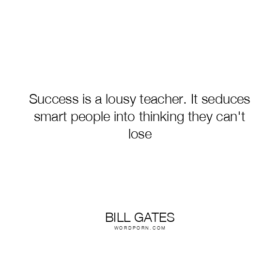 Success is a lousy teacher. It seduces smart people into thinking they can't lose
