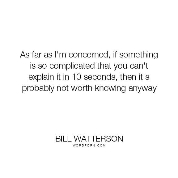 As far as I'm concerned, if something is so complicated that you can't explain it in 10 seconds, then it's probably not worth knowing anyway