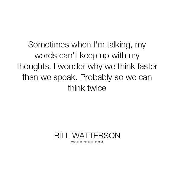 Sometimes when I'm talking, my words can't keep up with my thoughts. I wonder why we think faster than we speak. Probably so we can think twice