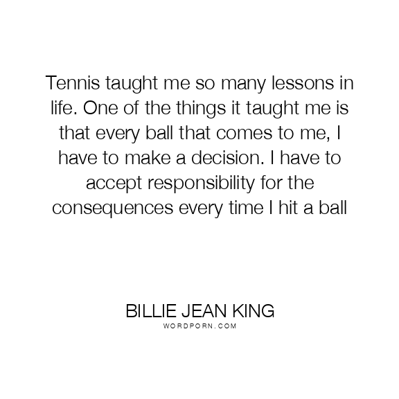Tennis taught me so many lessons in life. One of the things it taught me is that every ball that comes to me, I have to make a decision. I have to accept responsibility for the consequences every time I hit a ball