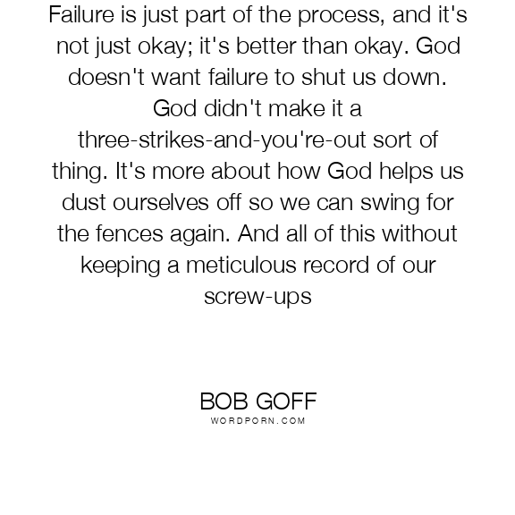 Failure is just part of the process, and it's not just okay; it's better than okay. God doesn't want failure to shut us down. God didn't make it a three-strikes-and-you're-out sort of thing. It's more about how God helps us dust ourselves off so we can swing for the fences again. And all of this without keeping a meticulous record of our screw-ups