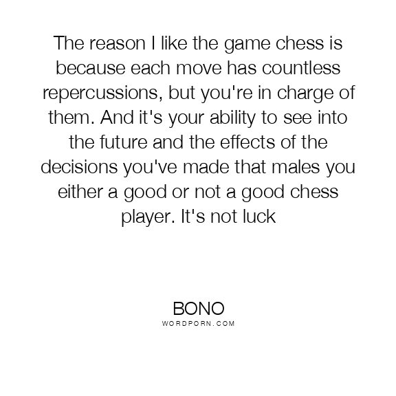 The reason I like the game chess is because each move has countless repercussions, but you're in charge of them. And it's your ability to see into the future and the effects of the decisions you've made that males you either a good or not a good chess player. It's not luck