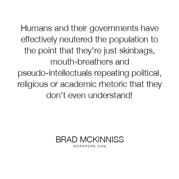Humans and their governments have effectively neutered the population to the point that they're just skinbags, mouth-breathers and pseudo-intellectuals repeating political, religious or academic rhetoric that they don't even understand!