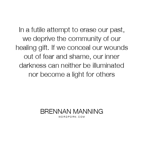 In a futile attempt to erase our past, we deprive the community of our healing gift. If we conceal our wounds out of fear and shame, our inner darkness can neither be illuminated nor become a light for others
