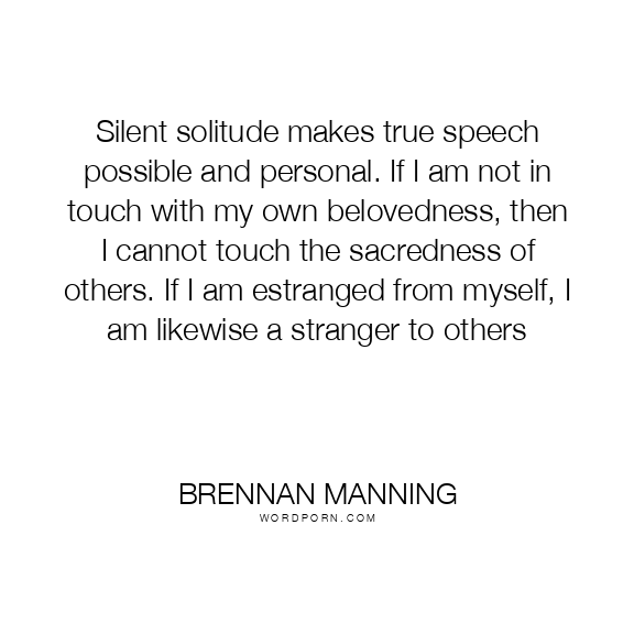 Silent solitude makes true speech possible and personal. If I am not in touch with my own belovedness, then I cannot touch the sacredness of others. If I am estranged from myself, I am likewise a stranger to others