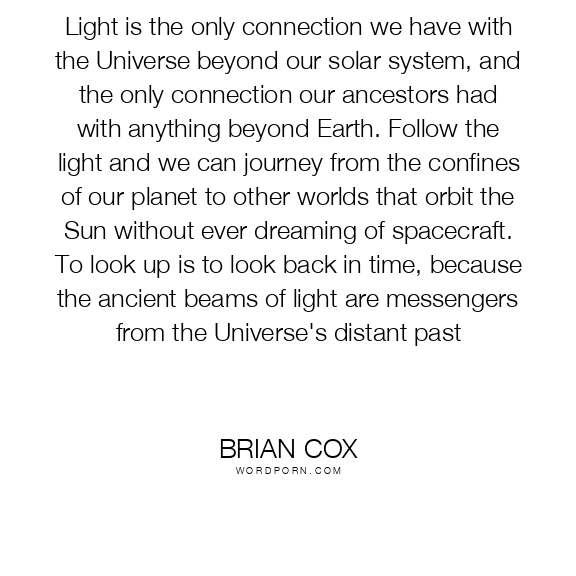 Light is the only connection we have with the Universe beyond our solar system, and the only connection our ancestors had with anything beyond Earth. Follow the light and we can journey from the confines of our planet to other worlds that orbit the Sun without ever dreaming of spacecraft. To look up is to look back in time, because the ancient beams of light are messengers from the Universe's distant past