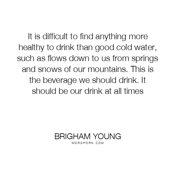 It is difficult to find anything more healthy to drink than good cold water, such as flows down to us from springs and snows of our mountains. This is the beverage we should drink. It should be our drink at all times