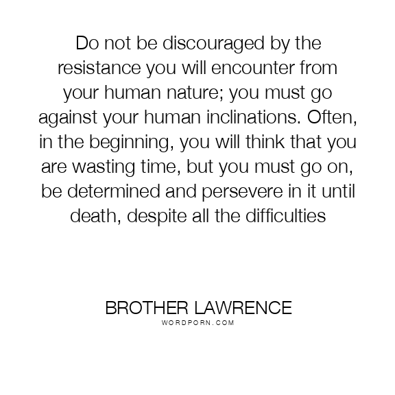 Do not be discouraged by the resistance you will encounter from your human nature; you must go against your human inclinations. Often, in the beginning, you will think that you are wasting time, but you must go on, be determined and persevere in it until death, despite all the difficulties