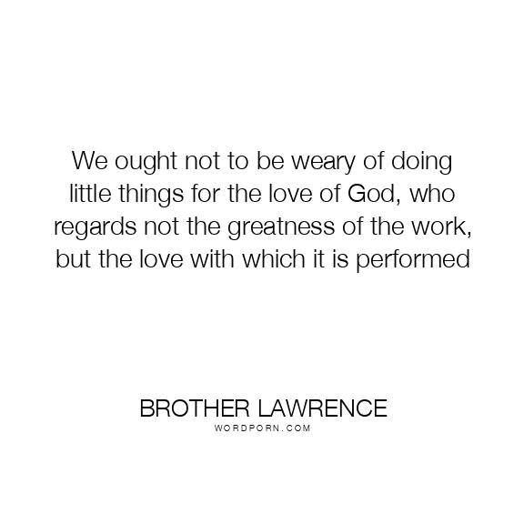 We ought not to be weary of doing little things for the love of God, who regards not the greatness of the work, but the love with which it is performed