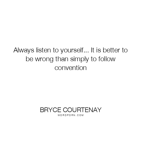 Always listen to yourself... It is better to be wrong than simply to follow convention