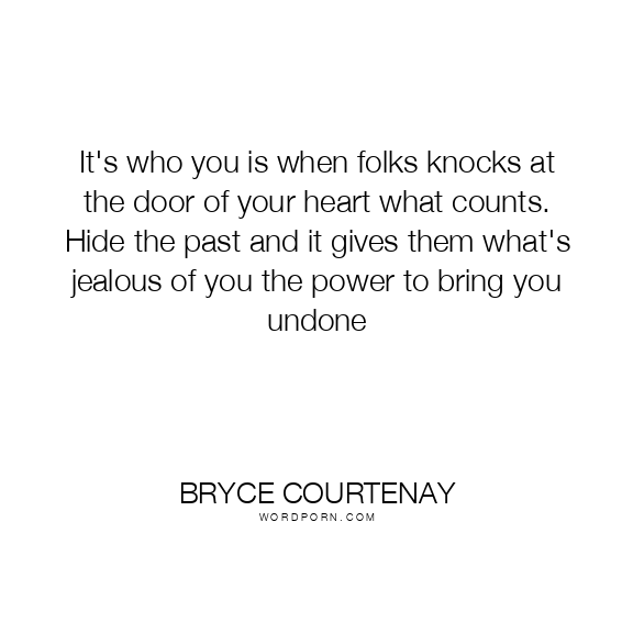 It's who you is when folks knocks at the door of your heart what counts. Hide the past and it gives them what's jealous of you the power to bring you undone