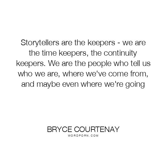 Storytellers are the keepers - we are the time keepers, the continuity keepers. We are the people who tell us who we are, where we've come from, and maybe even where we're going