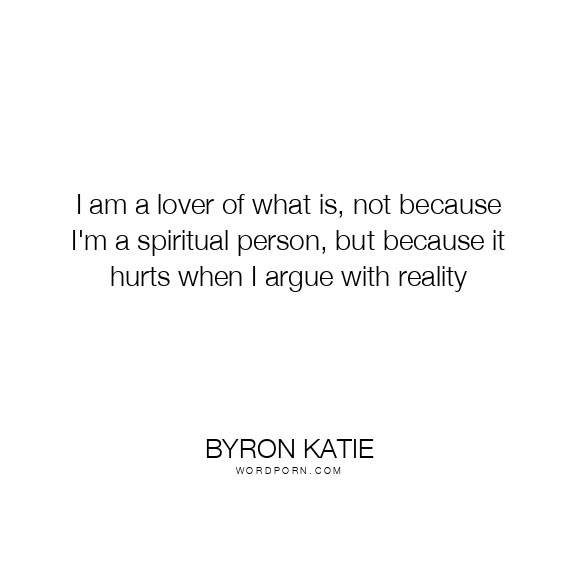 I am a lover of what is, not because I'm a spiritual person, but because it hurts when I argue with reality