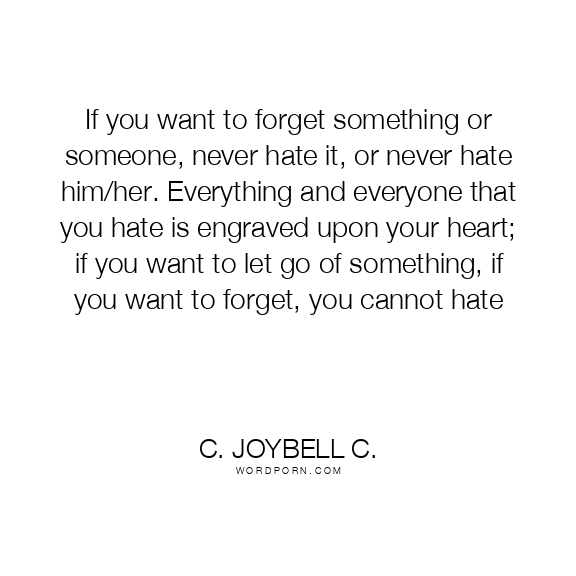 If you want to forget something or someone, never hate it, or never hate him/her. Everything and everyone that you hate is engraved upon your heart; if you want to let go of something, if you want to forget, you cannot hate