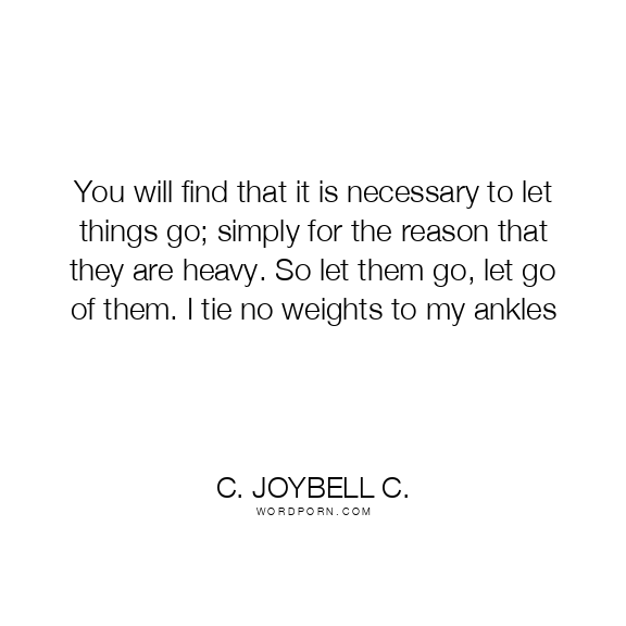You will find that it is necessary to let things go; simply for the reason that they are heavy. So let them go, let go of them. I tie no weights to my ankles