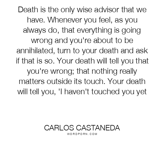 Death is the only wise advisor that we have. Whenever you feel, as you always do, that everything is going wrong and you're about to be annihilated, turn to your death and ask if that is so. Your death will tell you that you're wrong; that nothing really matters outside its touch. Your death will tell you, 'I haven't touched you yet