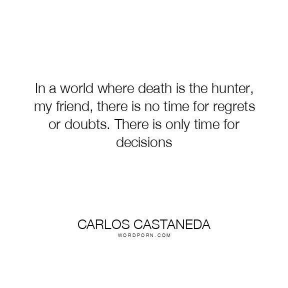 In a world where death is the hunter, my friend, there is no time for regrets or doubts. There is only time for decisions