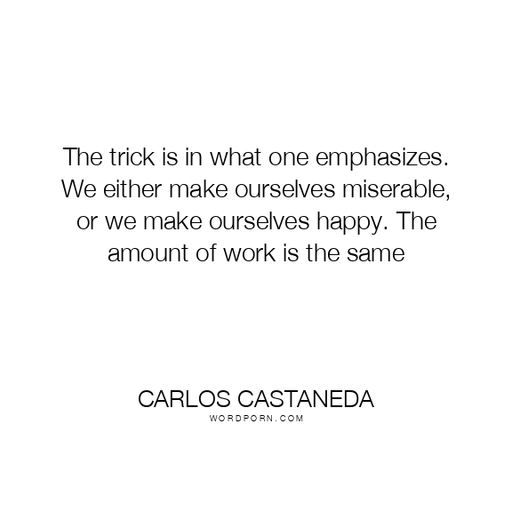 The trick is in what one emphasizes. We either make ourselves miserable, or we make ourselves happy. The amount of work is the same